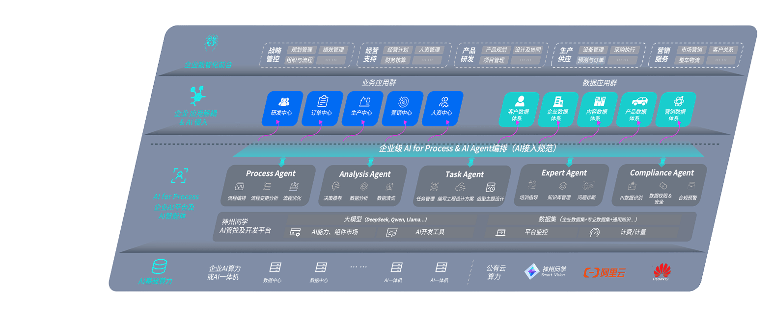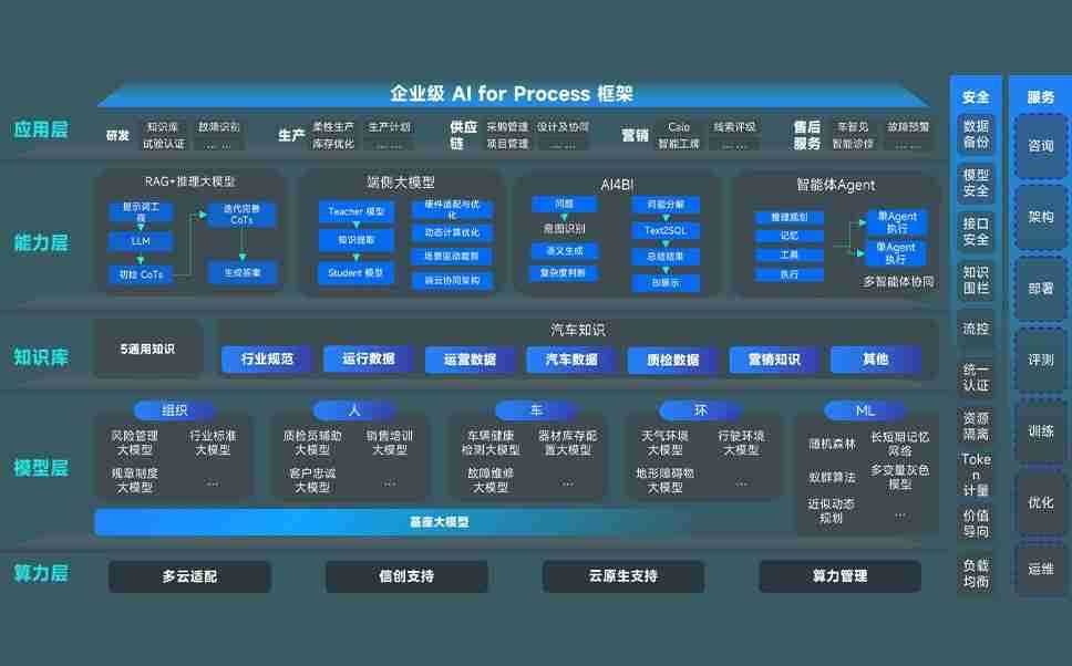 AG尊龙凯时问学智车解决方案是一套基于AI技术的汽车行业智能化系统,,,,覆盖从底层算力到顶层AI应用的全栈方案。。。。方案由算力层、、模型层和应用层组成:算力层,,方案支持多种一体机配置,,具备云端灵活部署、、、、多云适配以及动态优化计算资源的能力;模型层,,,AG尊龙凯时问学平台版提供了企业级AI应用一站式构建与管理平台,,支持基于后训练强化技术的汽车企业专属模型的训练、、评测和运营;应用层,,AG尊龙凯时问学DeepSeek版提供包括超级员工、、智能招采、、智能营销、、、、智能客服、、、AI for BI等一系列解决方案,,,可助力汽车行业实现数字化转型,,,让管理更智能、、、、响应更敏捷。。。。